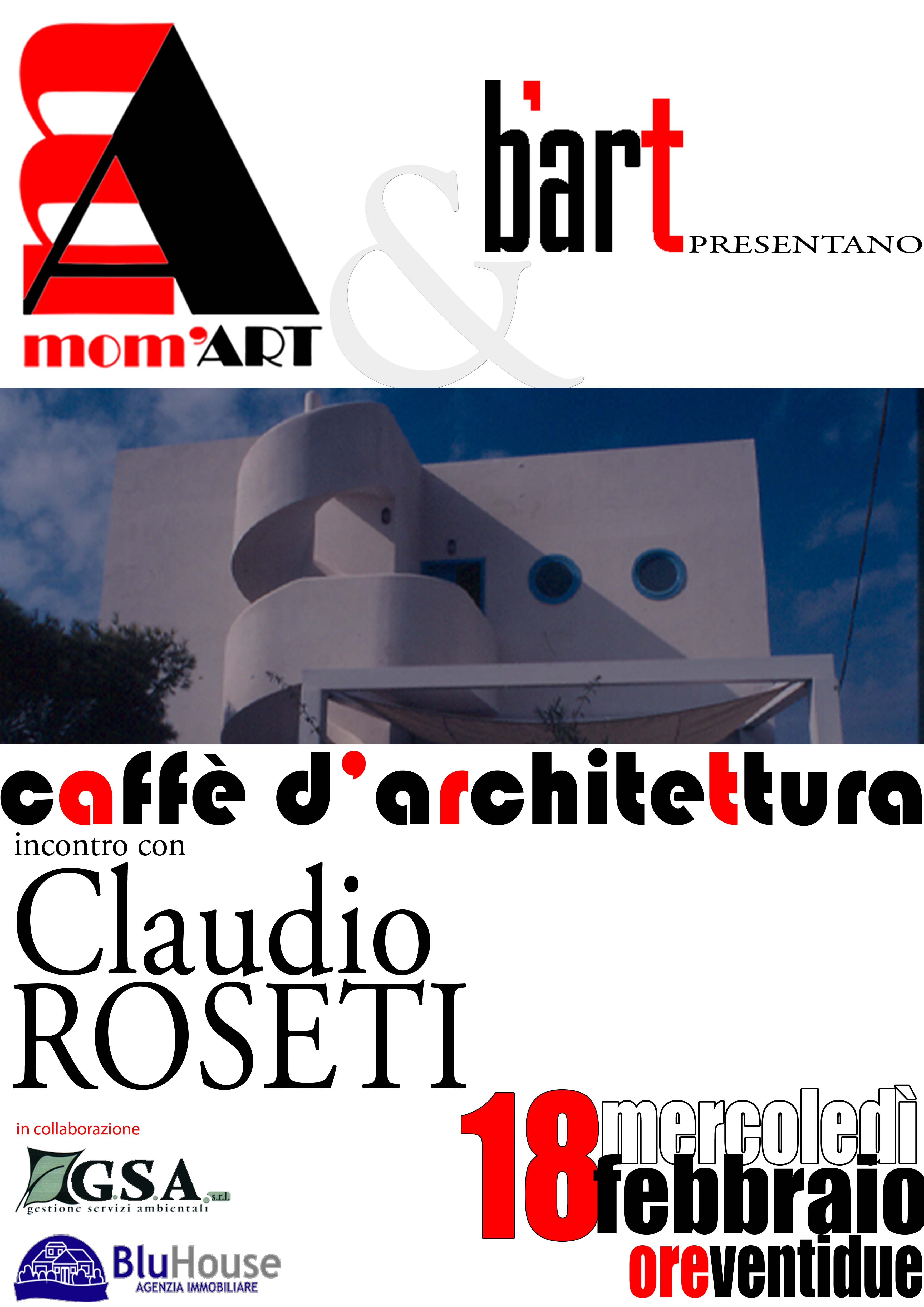 Mercoledì 18 febbraio ore 22.00 incontro con Claudio Roseti al B'art organizzato dall'associazione mom'Art. Locandina in allegato