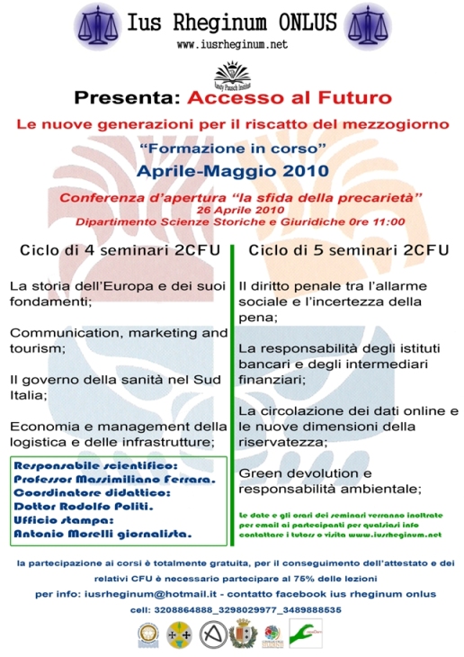26 aprile 2010 - Ius Rheginum Onlus "ACCESSO AL FUTURO"