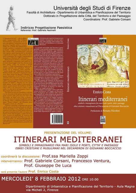 8 febbraio Enrico Costa presenta "Itinerari mediterranei" all'Università di Firenze