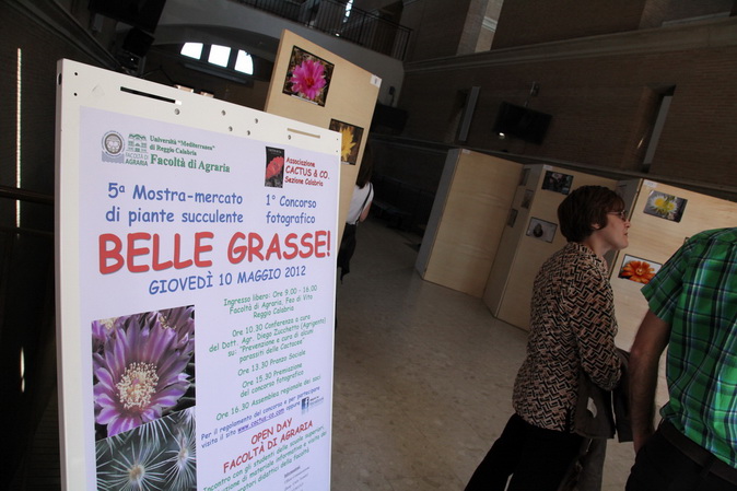 Grande partecipazione di pubblico per la V Mostra-mercato di piante succulente denominata “BELLE GRASSE!” che si è svolta giovedì 10 maggio presso la facoltà di Agraria dell’Università Mediterranea di Reggio Calabria a Feo di Vito. Dalle 9.00 alle 17.30 gli stand dei vivaisti specializzati sono stati presi letteralmente d’assalto da centinaia di ragazzi della provincia reggina tra cui quelli dell’ITC ”R. Piria” accompagnati dai docenti Cantarella e Carnevale. Ma non solo: tantissimo pubblico, ancora più numeroso delle scorse edizioni, è arrivato da tutta la provincia reggina e dalle quelle limitrofe.
